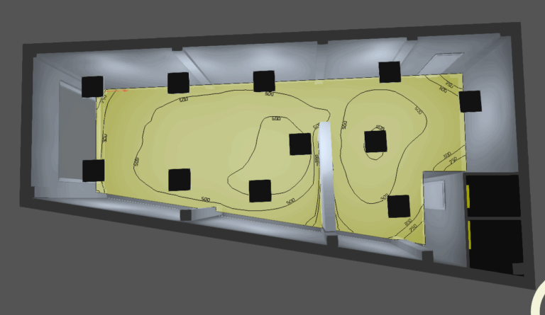 eMmeVuTecnica utilizza software illuminotecnici al fine di creare l’illuminazione di cui il cliente ha bisogno, ne rispetto dei requisiti illuminotecnici di legge.